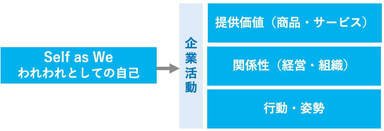 「Self as We(われわれとしての自己)」の視点で企業の提供サービス、経営・組織、行動・姿勢を見直すことで、ウェルビーイング社会に貢献できる企業活動を生み出すことが可能になります。