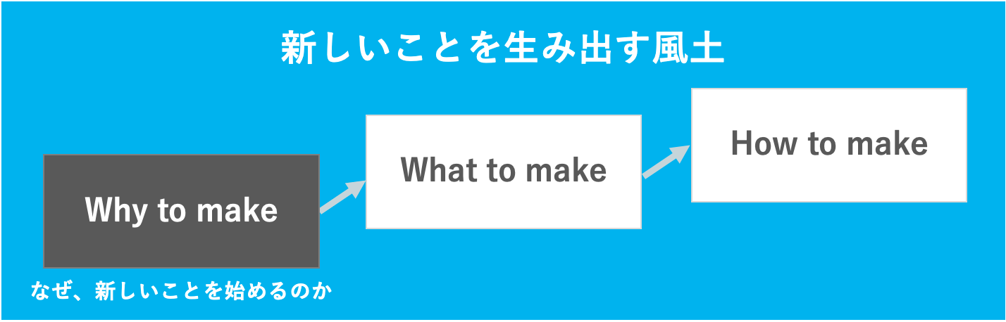 今の時代、 「Why to make」から「how to make」まで考えることを継続的に行なえる組織風土を作ることが重要になってきています。